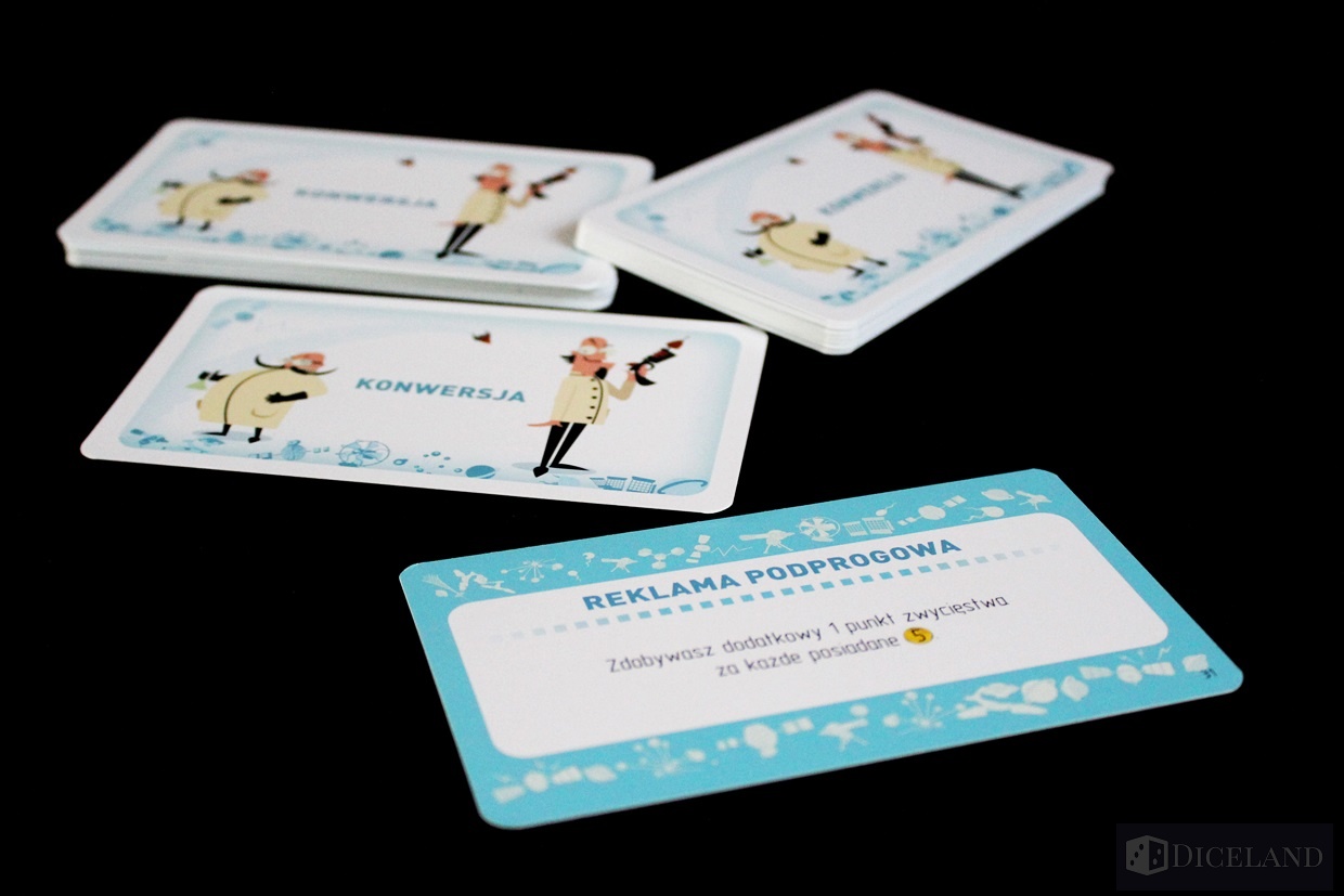 Powyższe zasady stanowią rdzeń gry. Instrukcja sugeruje nam, by zagrać jedynie według nich podczas pierwszej partii. W kolejnych rozgrywkach dołączyć możemy karty konwersji. Zmieniają one podstawowe zasady i są najciekawszym pomysłem w tej grze. Dzięki temu w każdej partii będzie można poczuć powiew świeżości. Zmiany nie są raczej kolosalne, jednak wyraźnie odczuwalne podczas gry. Również na spory plus zaliczyć można liczbę kart konwersji. W pudełku znajdziemy ich 36, a do gry każdorazowo wchodzą tylko dwie. Dzięki temu regrywalność gry jest znaczna.