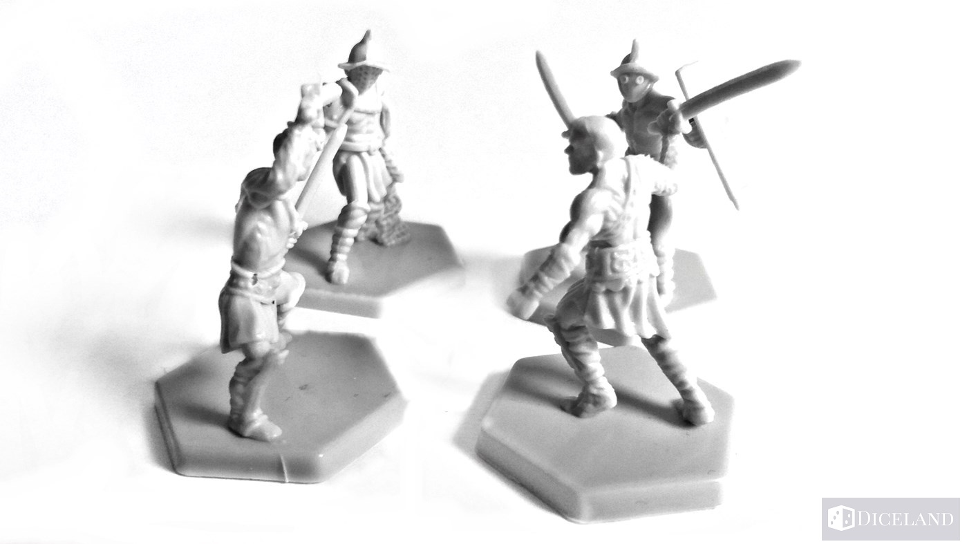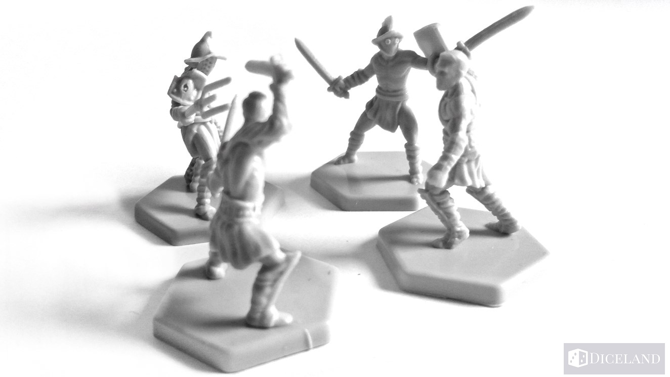Czterech graczy = 4 różne figurki gladiatorów, po jednaj dla każdego. Zostały one wykonane całkiem solidnie i oczywiście jeśli tylko mamy chęci i umiejętności, to możemy je pomalować.