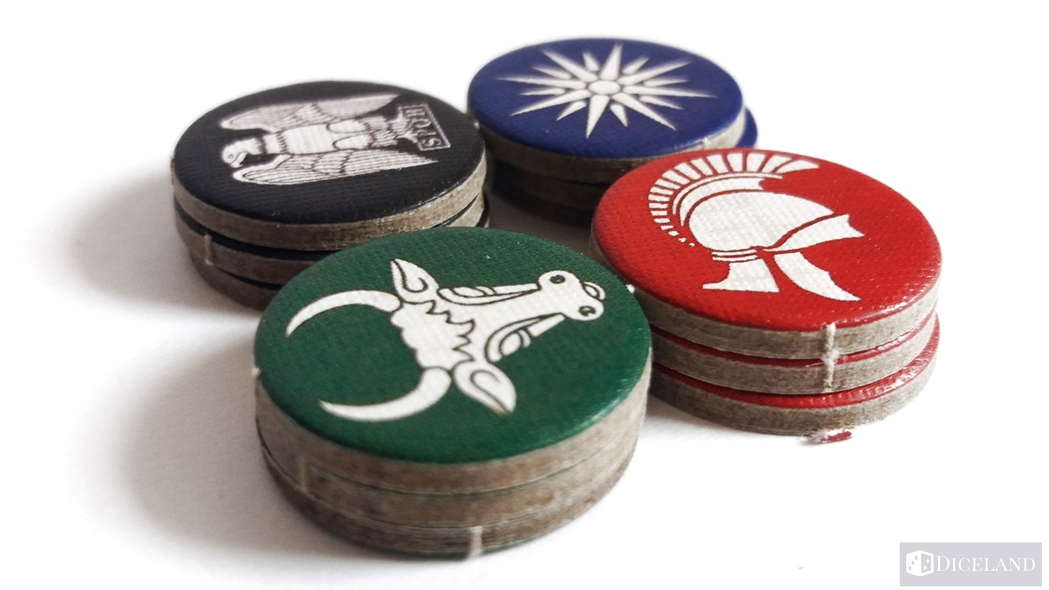 Gra została przeznaczona maksymalnie dla czterech graczy, dlatego też dla każdego z nich zostały przygotowane specjalne planszetki, które przypominają nam o przygotowaniu gry, zawierają indywidualne moce specjalne oraz służą do przechowywania złota i zaznaczania punktów wpływów.