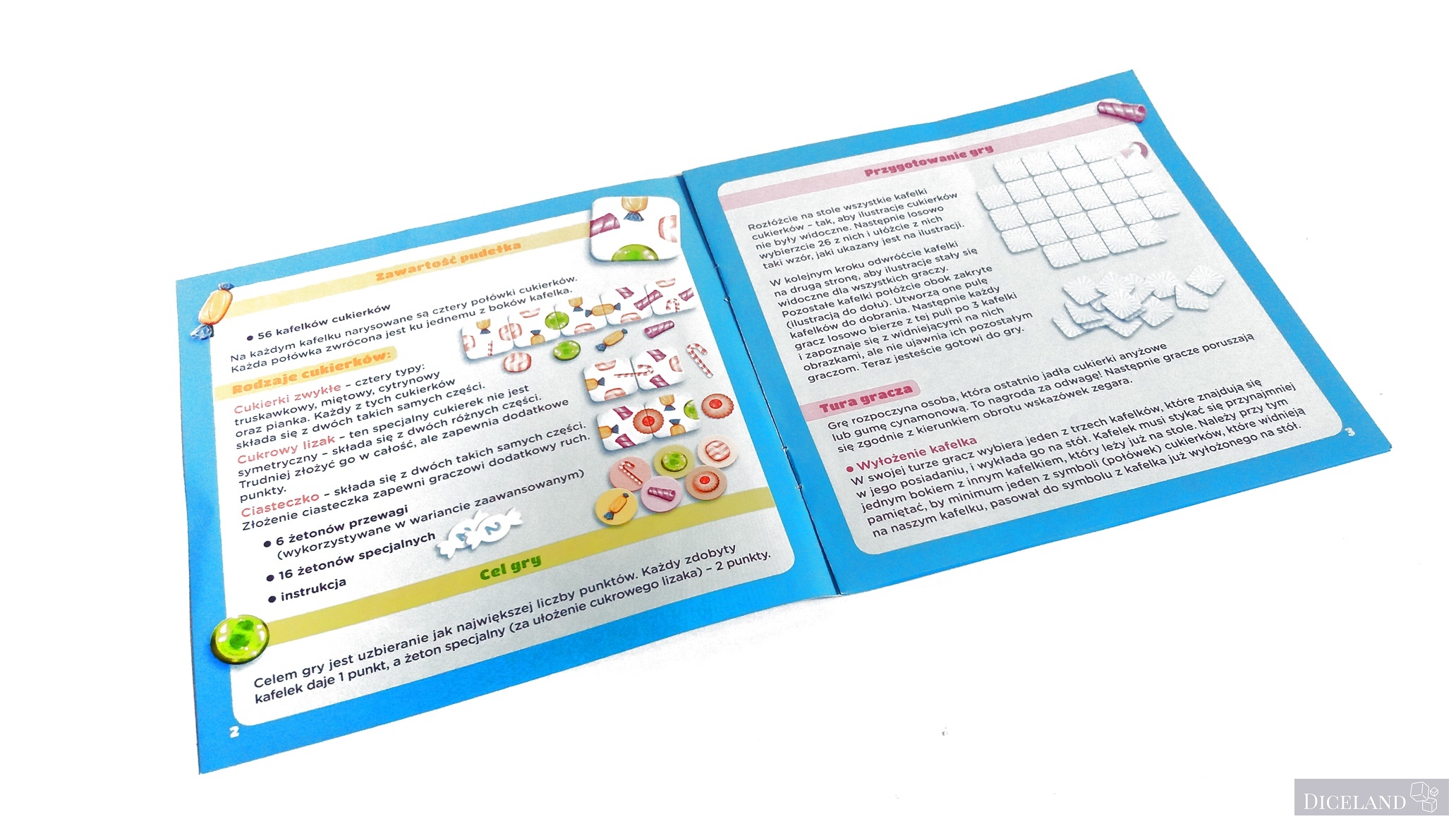 W pudełku znajdziemy ładną, kolorową i dobrze napisaną instrukcję, która swoimi przykładami idealnie przedstawia 2 warianty rozgrywki. Instrukcja ma 8 stron.