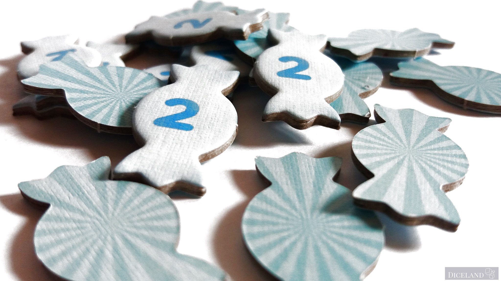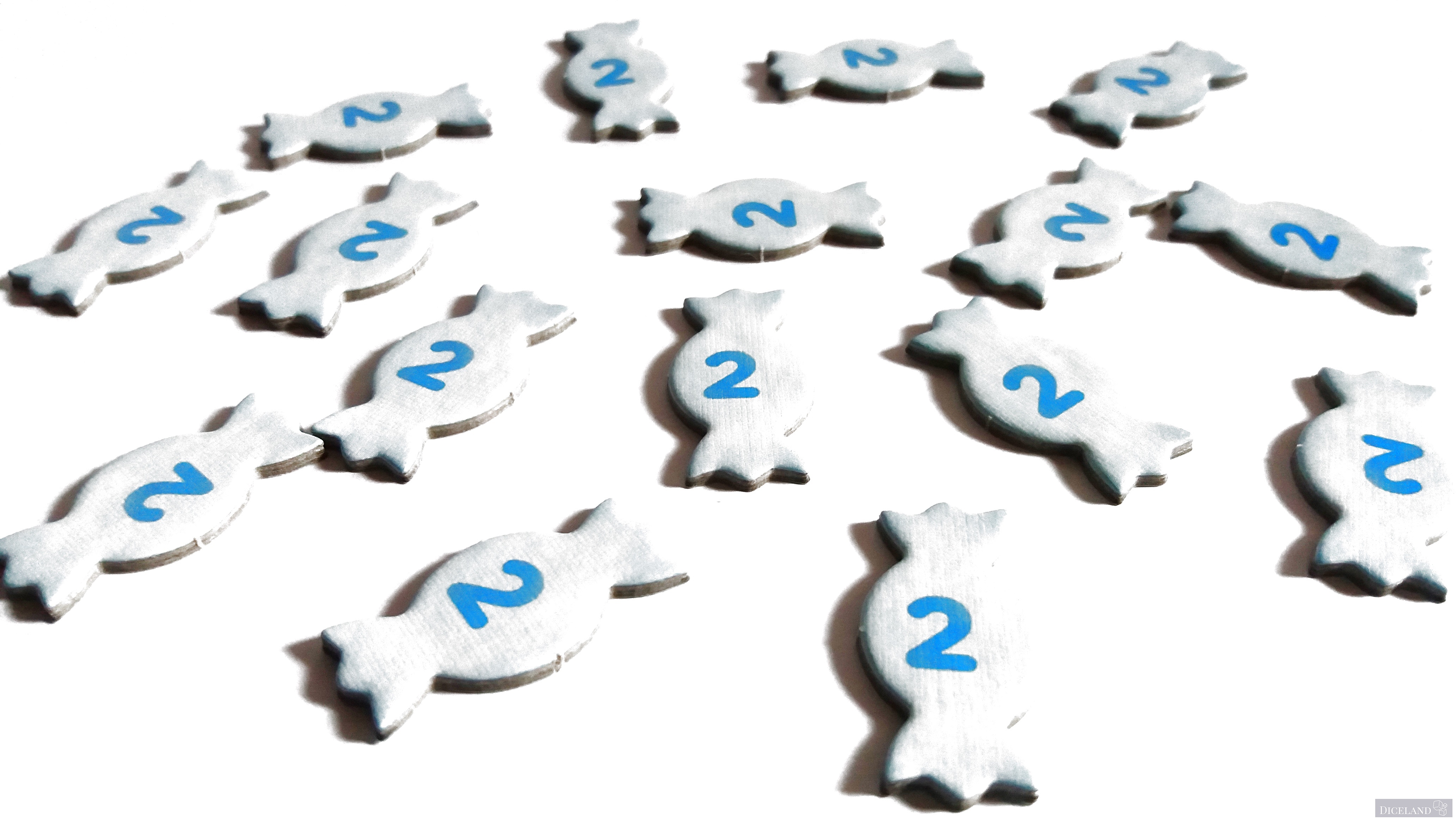 Małe żetony cukierków, które symbolizują dwa punkty.