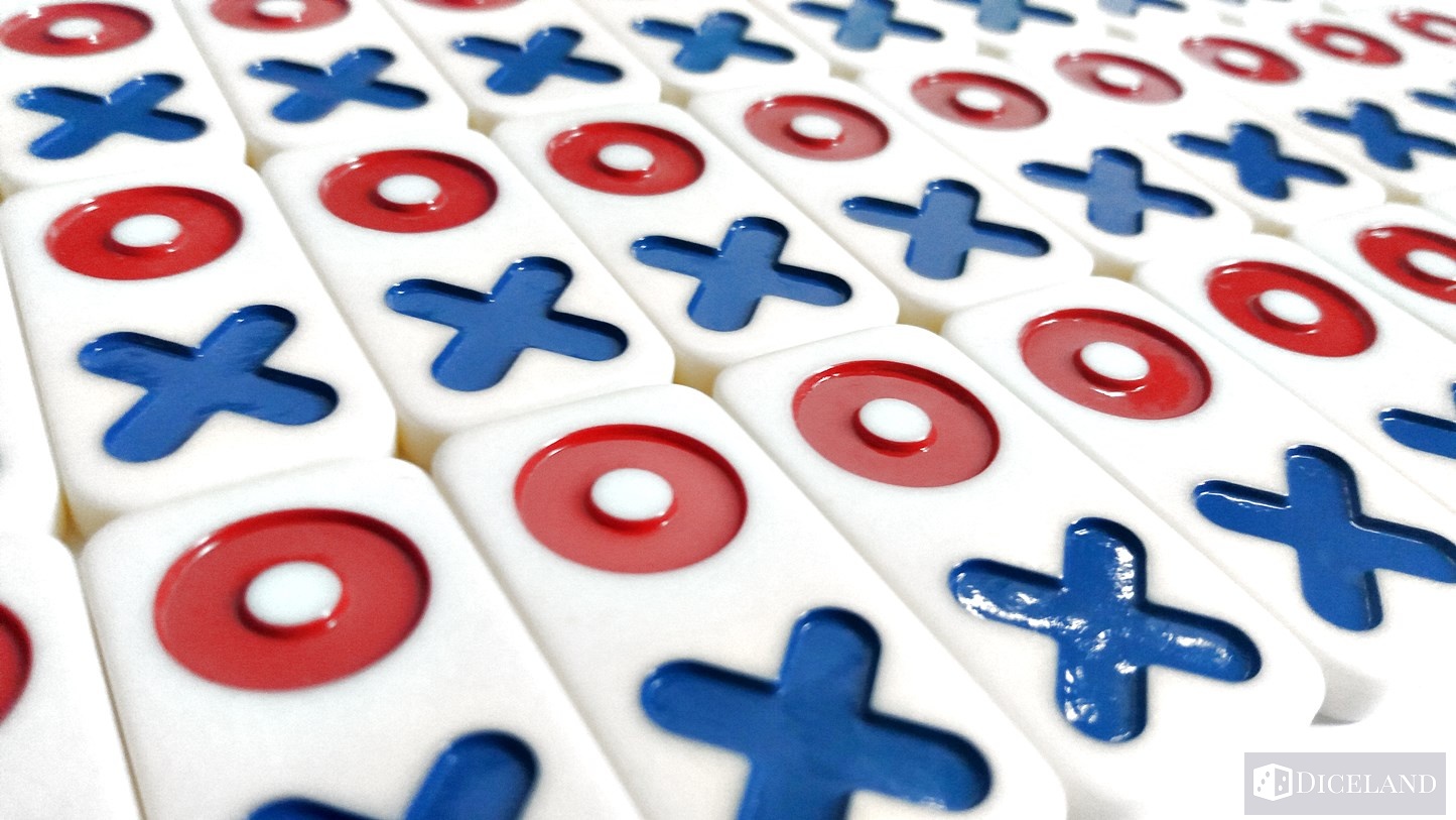 Każdy żeton posiada dwa symbole: czerwony – kółko i niebieski – krzyżyk. Są one bardzo przyjemne w dotyku i zostały dobrze wyważone, przez co przyjemnie umieszcza się je na planszy gry. Sama plansza to po prostu siatka kwadratów 10×10. Jest ona bardzo estetyczna i niezwykle dobrze prezentuje się podczas trwającej rozgrywki.