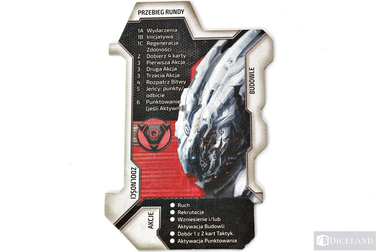 Każda rasa otrzyma także żeton sztabu, który umieści w wybranym miejscu na planszy oraz planszę frakcji z przypomnieniem przebiegu rozgrywki.
