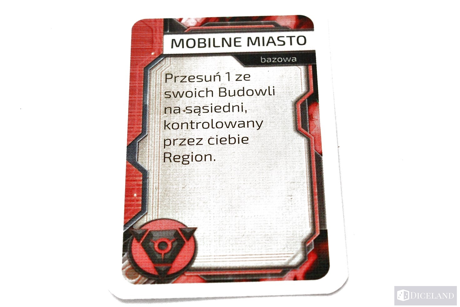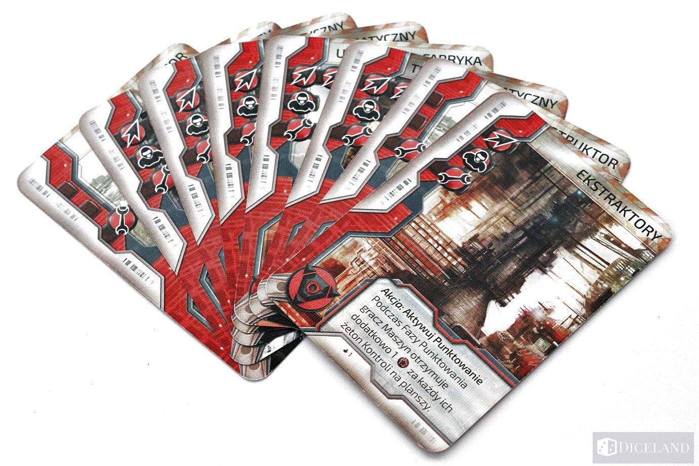 Wspomniana czytelność nie jest za to mocną stroną kart zdolności i płytek budynków każdej z ras. Znajduje się na nich zazwyczaj sporo tekstu, który jest zapisany małą czcionką. Gracze o słabszym wzroku mogą potrzebować okularów. W zasadzie niemożliwym jest również przeczytanie zdolności naszych konkurentów, gdy znajdujemy się nawet w niewielkiej odległości od nich. Pozostaje nam upewniać się co do ich możliwości pytając, aż do momentu gdy zapadną nam w pamięć. Jeśli chodzi o grafikę i wykonanie, to jest ono bardzo dobre. Płytki zrobione są z grubej tektury, a karty z odpowiednio sztywnego papieru.