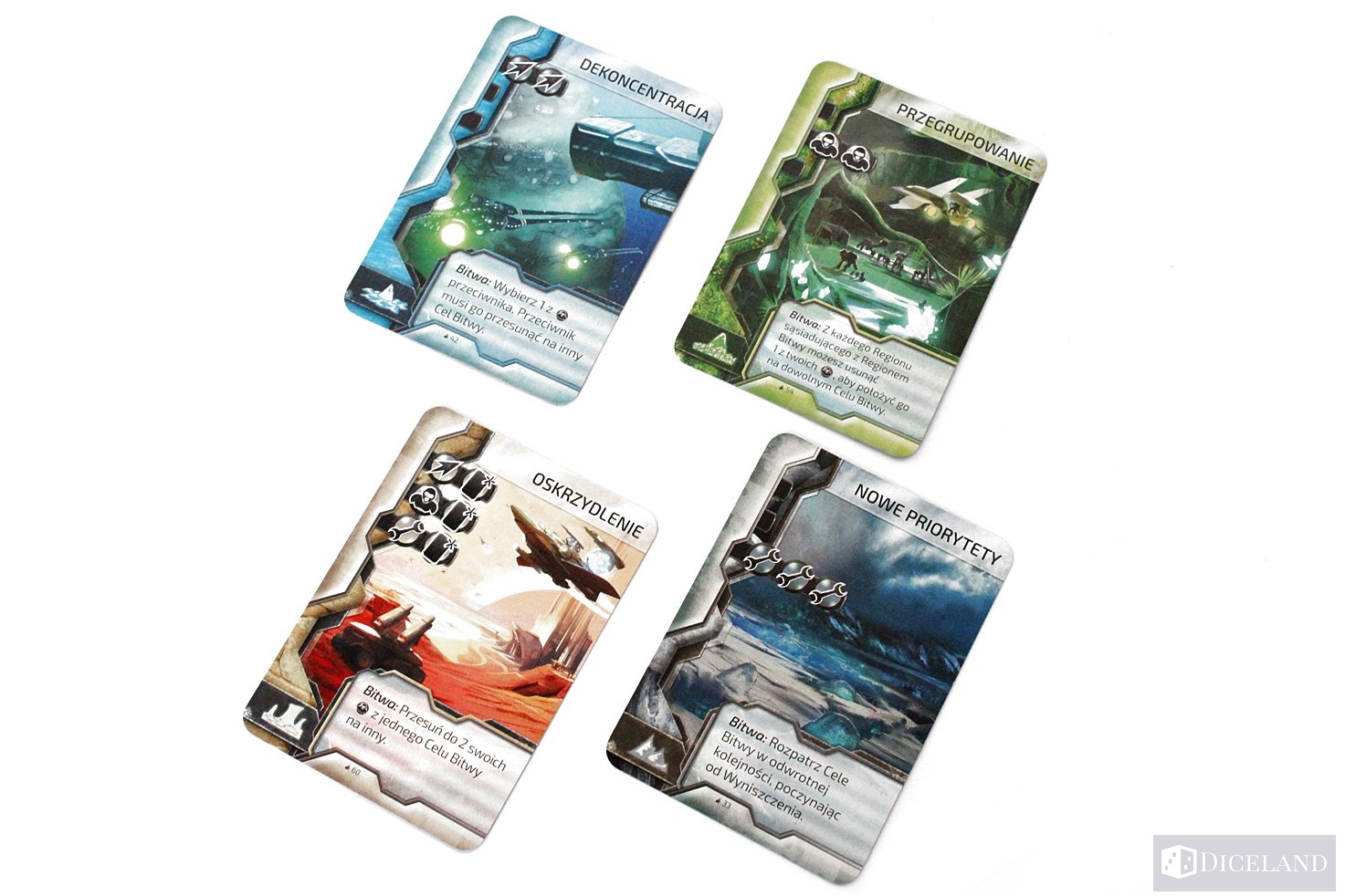 Każda z ras otrzymuje również własną talię kart taktyk. W trakcie gry będziemy mieli możliwość pozyskiwania kart taktyk terenowych, podzielonych na 4 talie w zależności od rodzaju obszaru, zwiększając w ten sposób nasze możliwości.