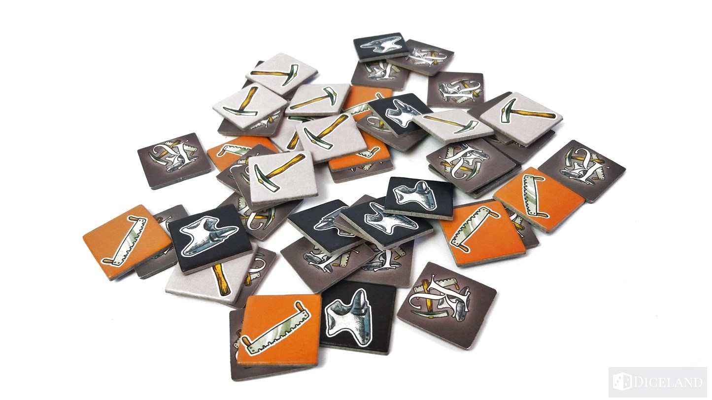 Robotnicy mogą także korzystać z już wybudowanych w naszej osadzie budynków, bez ryzyka ich utraty. Wydobywając surowce oraz przemieszczając je pomiędzy kaflami dzięki płytce domu, możemy udoskonalać budynki, a tym samym zmieniać zasady rozgrywki, np. umieszczając w licytacji zielonego robotnika, którego nie można na początku gry wylosować z czarnego worka, tym samym zapewniając sobie wyłączność na daną płytkę.