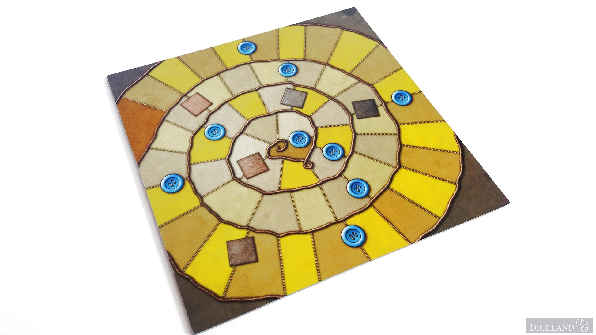 Na kawałkach materiału jest jeszcze jedna cenna informacja, która informuje nas, że za każdy guzik na tych materiałach będziemy dostawali odpowiednią wypłatę po przekroczeniu symbolu guzika na planszy gry. Znajdziemy tam również pola z łatą, którą dostanie ten z graczy, który jako pierwszy przekroczy dane pole.
