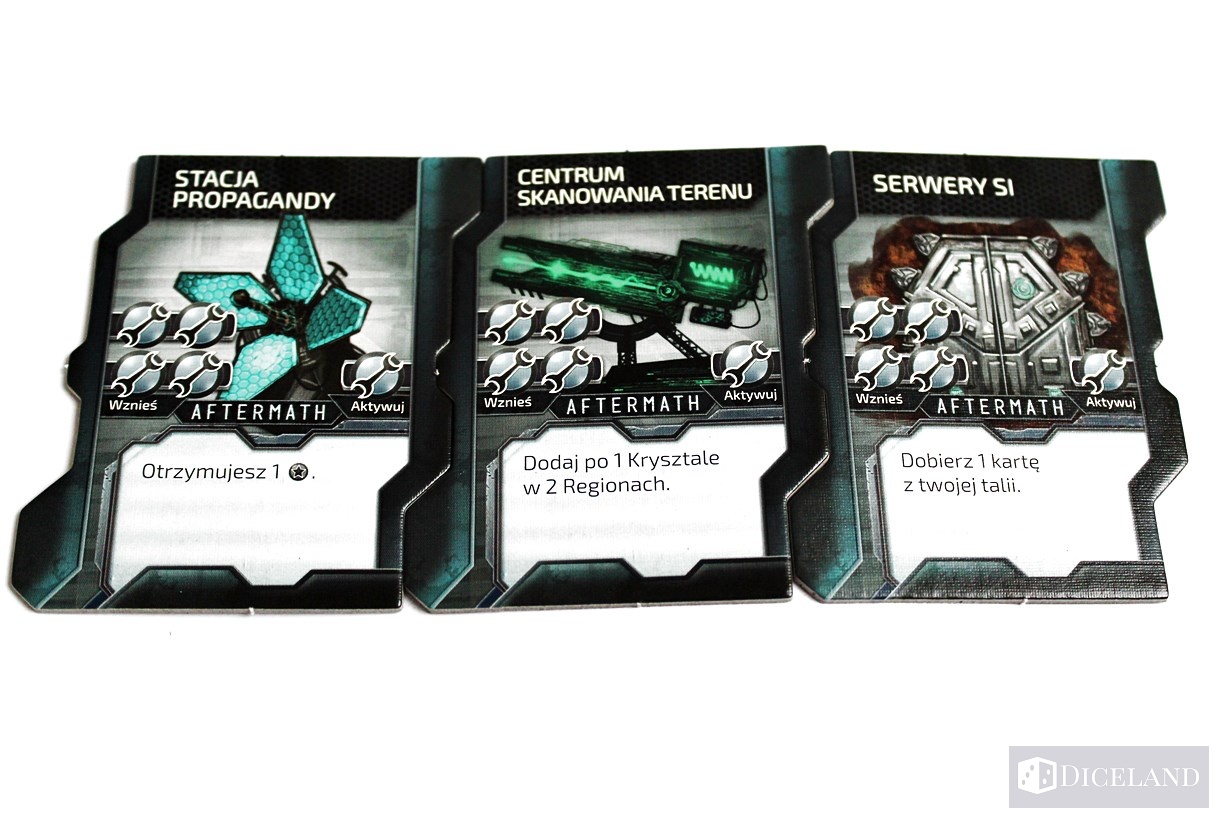 W pudełku znajdziemy też 3 rodzaje budynków uniwersalnych. Będą one mogły być wzniesione i aktywowane przez dowolnego gracza. Rozgrywkę wzbogacą także nowe karty taktyk terenowych, po dwie dla każdej talii.
