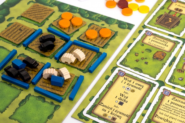 Grę zaczynamy mając 2 członków rodziny mieszkających w nierozbudowanej, dwuizbowej drewnianej chacie i dużą ilością niezagospodarowanego pola. Z czasem nasze nieużytki przekształcają się w dobrze prosperującą farmę. Nasza chatka wzbogaca się w kolejne izby, a z czasem zamienia się w chatę glinianą, a nawet kamienną. Rozbudowa naszej chaty pozwala powiększać rodzinę, a większa rodzina to więcej rąk do pracy. Jednakże tutaj kryje się cały smaczek gry, im większa rodzina tym więcej osób do wyżywienia, a jeśli chodzi o jedzenie to nie jest ono takie proste do zdobycia. Przez całą grę kombinujemy jak wyżywić naszą rodzinę i wokół karmienia obraca się cała rozgrywka. Na farmie możemy hodować owieczki, dziki i krówki – których wykonanie jest super. Aby hodować zwierzątka, potrzebujemy zbudować ogrodzenia, a nawet stodoły, które zwiększają pojemność danego pastwiska. Na polach możemy siać zboże i warzywa, które później możemy przeznaczać na wyżywienie rodziny. W grze co jakiś czas występują żniwa, podczas nich zbieramy nasze plony i to wtedy musimy przeznaczyć zdobyte jedzenie na wyżywienie zmęczonych farmerów. By wygrać w Agricolę musimy postawić na rozwój w każdej dziedzinie, gra nie pozwala nam punktować za bardzo skupiając się tylko na jednym aspekcie farmerskiej roli. Gra ma zarówno bardzo dużą rzeszę fanów jak i ludzi, którym ta gra się nie podoba ze względu na wcześniej omawianą mechanikę żywienia.