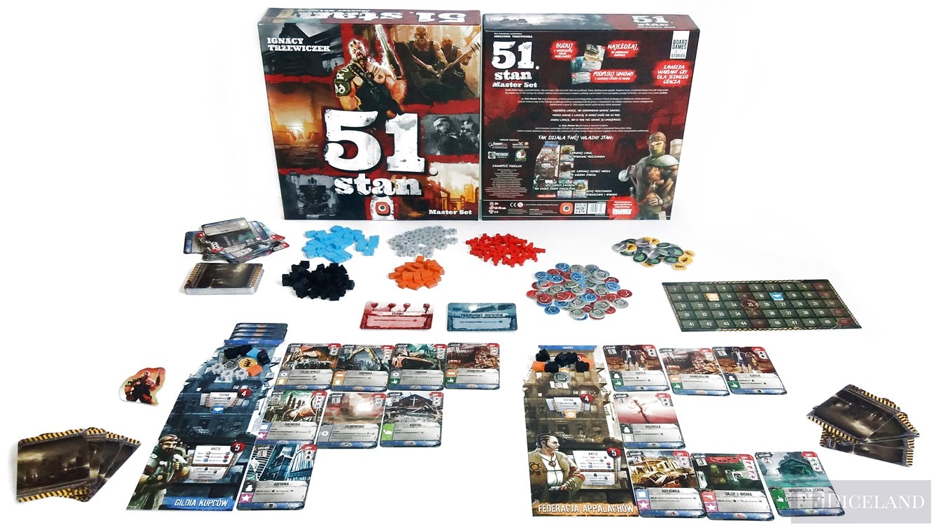 51 Stan to polska gra osadzona w postapokaliptycznym uniwersum gdzieś na terytorium Stanów Zjednoczonych. Jej autorem jest znany szerszemu gronu planszówkowiczów – Ignacy Trzewiczek. Jest to tak naprawdę druga wersja gry, której poprzedniczka ukazała się na polskim rynku już kilka dobrych lat temu. Tym razem zasady zostały nieco wygładzone i dopieszczone, dzięki czemu gra zyskała szersze grono zwolenników, w tym i mnie. Dzięki dwóm dodatkom, które zostały umieszczone w podstawowej wersji gry, zyskujemy sporą regrywalność. Najważniejsza w 51 Stanie jest mechanika zagrywania kart na kilka różnych sposobów. Możemy wybudować lokację, podpisać z nią umowę lub też obrabować ją z cennych dóbr – wybór należy do nas. W grze tej kluczem do zwycięstwa jest nie tylko odpowiednie zarządzanie surowcami, ale także wybór właściwych kart. Świetne ilustracje, fantastyczne wykonanie oraz unikatowe frakcje zapewnią Wam godziny świetnej zabawy, a do tego ten klimat…