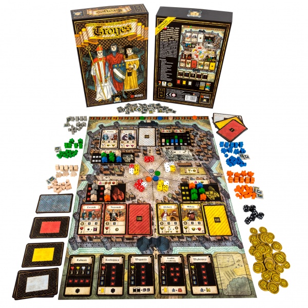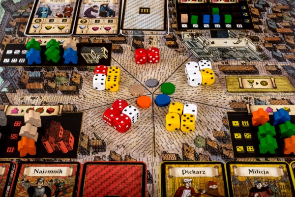 Pomimo tego, że Troyes to gra sucha jak wiór, to zasługuje na zaszczytne trzecie miejsce na moim podium. W grze wcielimy się w zamożne rodziny, które zaangażowane są w rozwój tytułowego francuskiego miasta. Używając swoich wpływów, będziemy się starali wpływać na trzy główne dziedziny związane z funkcjonowaniem miasta: wojskowa, religijna i cywilna. Troyes to przede wszystkim fantastyczna i unikatowa mechanika zarządzania kośćmi. Każdy z graczy pomimo tego, iż posiada własną pulę kości, to i tak stają się one ogólnodostępne i gdy tylko inny gracz sobie ich zażyczy, to ten pierwszy musi je oddać. Nie jest to jednak takie proste, gdyż za kości te musimy zapłacić, a zapłacimy za nie tym więcej, im więcej kości chcemy użyć w naszej aktualnej turze. Posłużą nam one do wykonywania najróżniejszych akcji. W trakcie gry będziemy handlować, budować katedrę, wspólnie odpierać ataki rzezimieszków oraz borykać się z różnymi problemami miasta.